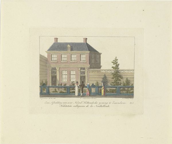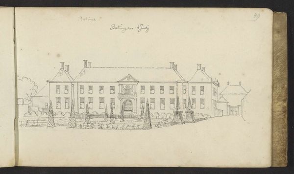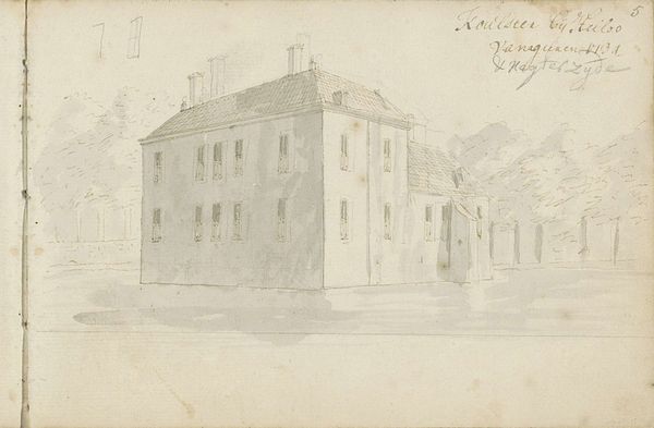 Editor: So, this is Edward Dayes' "The North Front of Chelsea Hospital." I find the muted colors quite soothing, almost nostalgic. What story does it tell you? Curator: Oh, it whispers of the Enlightenment, doesn't it? A structured world, yet rendered with a delicate touch. Dayes, bless his heart, captures the architectural ambition. He frames the hospital with nature, a gentle reminder of life's constant presence. Do you feel that harmony? Editor: I do. The tree adds a certain softness to the rigid architecture. Thanks, that’s insightful! Curator: My pleasure! It’s like Dayes wants us to ponder the interplay between order and the organic. Food for thought, isn't it?