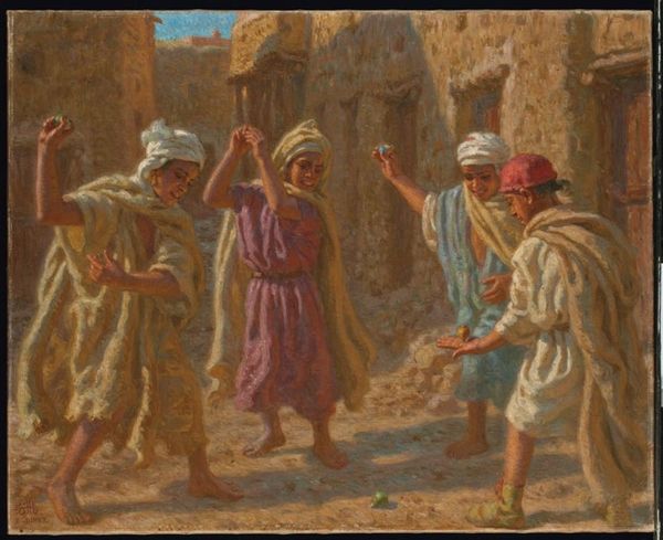 Nasreddine Dinet’s painting, *The Son of a Saint M’rabeth*, was made with oil paints, painstakingly layered to achieve a vibrant depiction of a North African community. Dinet dedicated much of his career to portraying Algerian life, and the tactile quality of his medium is crucial. You can almost feel the weight of the fabrics depicted: the roughspun cloaks, the intricately woven turbans. Each brushstroke seems to capture the particularity of the people and their environment, bearing witness to their cultural practices. Consider, too, how the smooth, almost polished surface of the painting itself contrasts with the textures it represents. Dinet’s labor-intensive method, rooted in a European fine art tradition, becomes a way of both celebrating and perhaps romanticizing a culture far removed from his own. Through the skilled application of paint, Dinet invites us to contemplate the complex relationship between artist, subject, and the very act of representation.