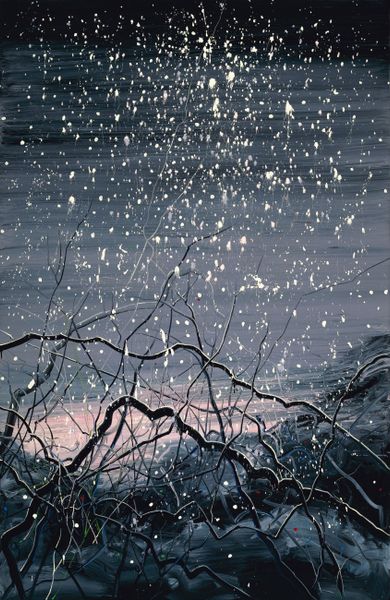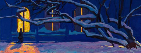 Frank Johnston made this painting, A Northern Night, using oil on canvas. Look at how the brushstrokes in the sky pull downwards, like soft, shimmering curtains. This piece feels like a memory, a place Johnston once visited or imagined. The magic of this painting is how the dark blues and whites play together. The snow isn't just white; it's got blues and grays mixed in, giving it depth. Then you have those stark tree trunks piercing the sky. Notice how they’re not perfectly straight, each with its own little wiggle, a sort of hand-drawn quality against the ethereal light of the Aurora Borealis. I think of Lawren Harris and the Group of Seven - Johnston was briefly a member - but there’s something more intimate here. While the Group of Seven aimed at a grand statement about Canadian identity, Johnston captured a personal moment. In the end, this is about how a painter sees light and tries to catch it, like fireflies in a jar.