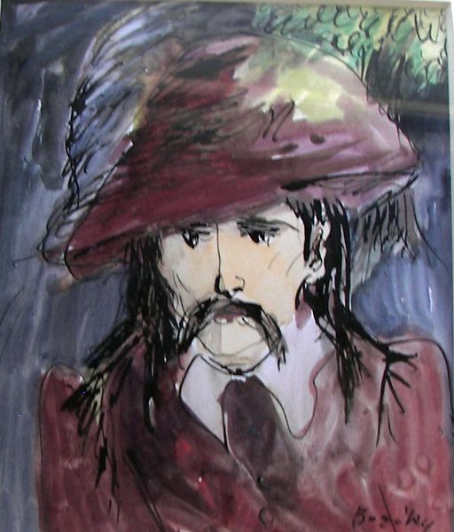 Editor: This is "The Alchemist," painted in 1994 by Maria Bozoky. It's a swirling mix of gouache and watercolor that feels almost…dreamlike. The colors are so intense, and that central figure looms large. It makes me wonder, what's going on beneath the surface? What do you see in this piece? Curator: Oh, "The Alchemist"! For me, it’s a portal into the messy, beautiful world of transformation. Think of alchemists trying to turn lead into gold—they were after more than just precious metal, weren't they? Bozoky uses that historical imagery as a metaphor for something deeper: the soul's own quest. What ‘lead’ are we trying to transform? Do you get a sense of the artist perhaps pondering the artistic act itself, with all the mess and turmoil and maybe just a flicker of success? Editor: That’s a fascinating idea! I hadn’t considered that link between alchemy and art-making. It's the intensity of the colors and expressive brushstrokes, so do you think it’s drawing from the expressionist movements of the 20th century? Curator: Absolutely. Bozoky’s bold color choices and the slightly distorted figures resonate with those Expressionist roots. Yet, it moves into something more personal. The vulnerability of the figures... their searching gaze…they invite us to explore our own vulnerabilities. It’s like she's saying, “Here, feel this. Wrestle with this." And don’t you feel a connection, on some strange level, to that raw humanity? Editor: Definitely. There's a sort of chaotic energy but also something so deeply human. It's interesting how she blends historical references with such personal emotion. It definitely brings a new layer of meaning to the whole concept of neo-expressionism. Curator: It does indeed. Every brushstroke seems to whisper, "Question everything." That’s the kind of alchemic reaction I adore in art! It gets you thinking! Editor: Absolutely! It certainly has given me something to ponder. Thanks so much!