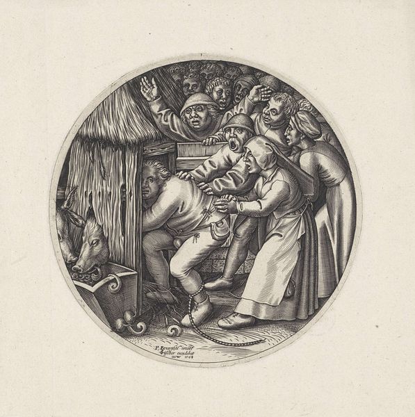 Georg Pencz made this small engraving, "To Bury the Dead," sometime in the first half of the 16th century. The scene depicts a group of figures lowering a shrouded body into a grave. Pencz was a leading printmaker in Nuremberg, Germany, at a time of significant social and religious upheaval related to the Protestant Reformation. Prints like this one served a vital role in disseminating ideas and images. Although this work is not explicitly Protestant, the emphasis on earthly rituals and communal action aligns with the shift away from elaborate church ceremonies that characterized the Reformation. The print also reflects broader social concerns with death and disease, as outbreaks of plague and other illnesses were a recurring reality in 16th-century Europe. To fully understand this print, we can consult historical documents, religious texts, and studies of social customs. By placing the artwork in its institutional and cultural context, we gain a deeper understanding of the social role of art and the politics of imagery.
