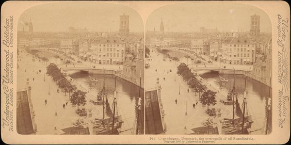 Editor: We’re looking at a gelatin silver print, "Gezicht op de Warmoesgracht in Amsterdam," dating from the late 19th century, credited to Pieter Oosterhuis. There's such a stillness to this cityscape, like a pause in time. I'm curious, what stands out to you? Curator: Funny you mention that stillness. It’s not just the water, but something about the way Oosterhuis seems to have captured the light – almost a hush over the city, don't you think? Notice how the buildings reflect in the canal, as if mirroring not just their image, but perhaps a deeper, more introspective reality of Amsterdam. What story do you imagine those reflections might be telling? Editor: That's beautifully put! It's almost ghostly. But it also makes me think about how different the city must have felt then, so much slower paced compared to now. Curator: Absolutely. This image feels like a visual poem about a specific place and moment. And photography then was a relatively new art form; think of Oosterhuis exploring its possibilities, almost like a painter with a light brush. Does it evoke any particular feelings for you, thinking about that? Editor: It definitely makes me appreciate the photograph as more than just a document. I see it now as an artistic statement. Curator: Exactly! And maybe that’s the magic of art, isn’t it? To make us pause, reflect, and see the world, even familiar places, in a brand-new light. Editor: I agree. This has definitely given me a new perspective on cityscape photography!