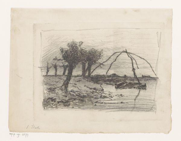 Cornelis Vreedenburgh made this etching of a river with boats on the waterfront, though we don’t know exactly when. The marks build up, light touches that create the impression of a scene, like remembering a place, bit by bit. Looking at the water, you can see the subtle variations in tone, achieved through delicate lines, almost a shimmer. There’s a quietness to it, a sense of stillness. But look closer at the way the foliage on the left is rendered: a mass of tangled lines, almost chaotic, creating a contrast with the serenity of the water. That contrast is important, you know, because it's in those unexpected juxtapositions that things get interesting! It reminds me a little of Whistler's etchings, that same focus on atmosphere and mood, but with a touch more roughness, a rawness that feels very personal. It’s a reminder that art isn't about perfection, it’s about embracing the unexpected and finding beauty in the everyday.