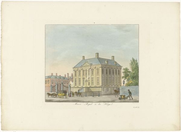 Carel Frederik Bendorp created this print, “View of the Walloon Church in Rotterdam,” using etching and engraving techniques. Imagine the late 18th century in Rotterdam, a city of trade and cultural exchange. Bendorp, born into this world, gives us a glimpse into the daily life around the Walloon Church. This church was a place of worship for French-speaking Protestants. The print captures a bustling scene: people from various walks of life, dressed in the fashion of the time, populate the square. There are merchants, families, and individuals going about their business. The architecture reflects a blend of Dutch and French influences, mirroring the community's identity. Notice how Bendorp pays attention to the details of everyday life. The way people are dressed, the interactions between them, and the presence of animals all contribute to the narrative of this urban space. It invites us to reflect on the stories of those who lived and moved through this space, and the ways in which their identities were shaped by their environment.