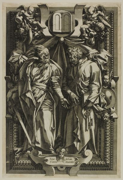 This allegorical title page with Mercury and Minerva was created by Cornelis Galle I, sometime between the late 16th and mid-17th century. It is a black and white print. In Galle’s time, the depiction of Greco-Roman deities was a means of conveying humanist values and aspirations. Here we see a naked Mercury, messenger of the gods, positioned alongside Minerva, the Roman goddess of wisdom and strategic warfare. These figures flank a central cartouche and symbolize the values of trade, diplomacy, and military prowess as essential to a thriving society. It's interesting to consider how these figures, embodying traditionally masculine domains of intellect and commerce, are presented in gendered terms. Minerva, though a powerful goddess, is still bound by expectations of female virtue and duty, whilst Mercury has freedom and mobility. The print invites reflection on the legacies of power and knowledge, and on the subtle ways in which gender roles were constructed and reinforced through art.