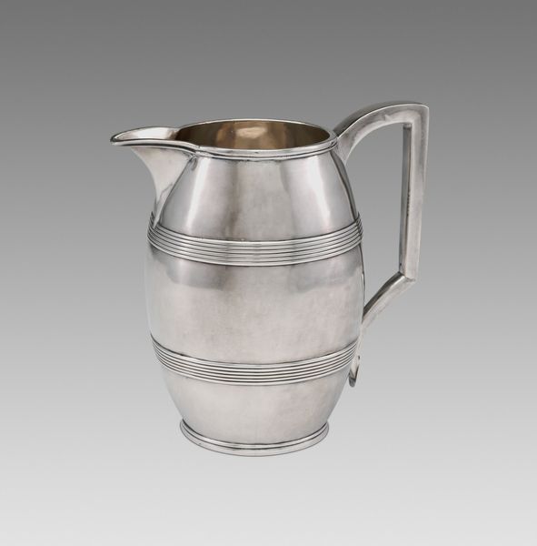 Here we see a cup made by Joseph Loring out of silver. The cup exhibits a fascinating interplay between form and texture. Its cylindrical shape, with clean lines and a simple handle, presents an image of classical elegance. This is sharply contrasted by the mottled, almost organic texture across the surface of the silver. The texture is particularly intriguing as it invites questions about the piece’s making. What does the contrast between the cup’s shape and surface texture tell us? Could the seemingly simple form of the cup conceal a deeper investigation into materiality and the sensory experience of interacting with everyday objects? It disrupts any singular reading of the object. Consider how the cup challenges conventional ideas about the fixed nature of materials and form. It serves as a constant site for re-evaluation.