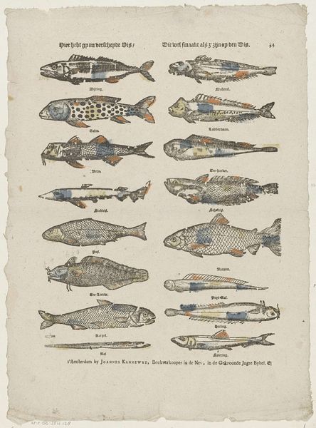 Curator: Ah, look at this beautiful plate of aquatic diversity! This is "Twelve Different Fish Species," a watercolor drawing made sometime between 1802 and 1855 by Carl Cristiaan Fuchs. It resides in the Rijksmuseum collection. Editor: My goodness, they’re peculiar! They look almost like fantastical creatures dreamed up for a storybook. So, both charming and a little… menacing. Is it just me, or does that ray have a definite air of disapproval? Curator: Well, remember the context. During this period, scientific illustration often served to both document and interpret the natural world. Think of the age of exploration; artists played a critical role in visualizing newfound species for a European audience, thus mediating perceptions of nature, if you will. Editor: I see your point. There’s a scientific attempt at capturing the specimens accurately, definitely, but there's something playful here as well. Take the coloring—soft, muted, like memories of a real experience. Or that slightly bug-eyed expression on number six there… I can't help but think there’s a touch of artistic license at play! It is nice the way each fish is uniquely positioned as well; they are not just organized for the sake of labeling them with those numbers on the plate, are they? Curator: Exactly! Consider also that institutions like the Rijksmuseum and others displaying pieces like this aimed, in a way, to democratize knowledge. They sought to make discoveries accessible, visually, to broader audiences. But naturally, even these intentions can have limitations, shaped by dominant perspectives… Editor: Which is something someone with my expertise might question. Yes, these images are gorgeous, yes they helped distribute knowledge... but in what form and for whom? Who controlled that knowledge and what narratives were constructed through these images? Curator: Precisely the right questions to keep in mind as you observe these specimens of history and of nature. Editor: Food for thought and food for…fish! Curator: I would agree! I shall carry that image with me, now. Thank you.