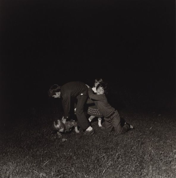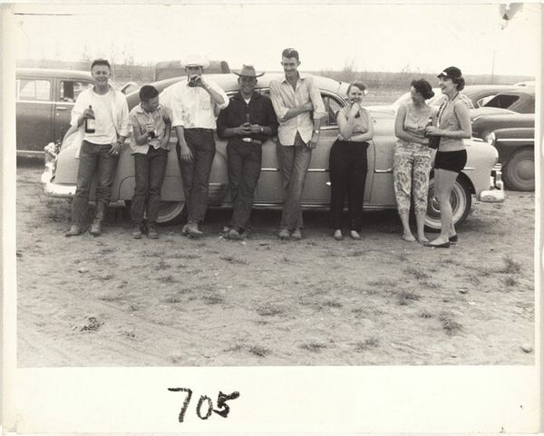 This small black and white photograph shows us a man flipping in the air at what appears to be a summer camp. This found photograph raises questions about how the meaning of images shifts depending on who is viewing them, and in what context. The image is likely from the mid-twentieth century in the United States, judging by the style of clothing. We might wonder about the social dynamics of this camp. Is it a sports camp, a summer retreat, or perhaps a military training ground? The casual poses of the other men suggest a relaxed atmosphere, but the uniformity of the tents hints at a more structured environment. Without knowing the photographer or the original context, we can only speculate about the image's intent. Was it a candid snapshot of youthful exuberance, or a carefully staged performance of athleticism? The image's ambiguity invites us to consider the role of historical research in uncovering the hidden stories behind seemingly simple photographs. By examining related documents, such as camp brochures, personal letters, and institutional records, we can gain a deeper understanding of the social forces that shaped this image and its meaning.