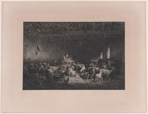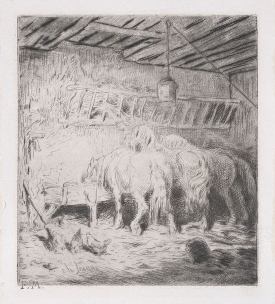 Johannes Wilhelm Zillen etched "En kostald" around the mid-19th century, showing the serene interior of a cowshed. The dominant visual symbol is the cow itself, a motif steeped in cultural and religious significance. Throughout history, the cow has been a symbol of nurturing, fertility, and abundance. In ancient cultures, such as those of Egypt and India, cows were revered as sacred beings, representing life-giving forces. This veneration is echoed in various mythologies and religious traditions where bovine figures embody maternal and protective qualities. Even the humble setting of the cowshed recalls similar archetypes in different eras. Think of the cave as a symbol of safety and nourishment, and the Christian Nativity scene. Consider how such representations resonate with the collective memory of safety and the subconscious appreciation for the life-sustaining aspect of nature. This cyclical recurrence highlights how deeply ingrained the symbology of the cow is, transcending cultural boundaries and resurfacing in different forms across time.
