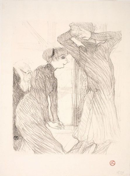 Here we have Jean-Louis Forain’s print, "Knotting the Cravat" whose date is unknown. It presents a scene rendered with an expressive network of fine lines. The composition is structured by the stark contrast between light and shadow, creating a visual tension that heightens the scene’s emotional undertones. Forain’s use of etching captures a fleeting moment, freezing it within a network of lines and textures. The visible hatching and cross-hatching not only define form but also contribute to the atmosphere, suggesting a world in flux. The cravat itself functions as a signifier of class and identity. The act of knotting it might symbolize the intricacies of social performance, the constraints and rituals that bind individuals within societal expectations. In this context, the artwork prompts us to consider how such moments reflect broader cultural codes and the subtle ways in which individuals negotiate their roles within these systems.