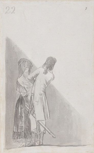 "Lovers Sitting on a Rock" is a drawing by Francisco de Goya. Goya lived through a period of immense social and political upheaval in Spain, including the French Revolution and the Napoleonic Wars. He was a court painter, and also a social critic, and his art often reflects these tensions. In this drawing we see a couple sitting together, seemingly in a moment of intimacy. She is veiled, and the bare feet of both figures suggest a kind of vulnerability, or perhaps a disregard for social conventions. But who are these lovers? Goya was known for his satirical portrayals of the Spanish aristocracy, and it's possible that this drawing is a commentary on the relationships between men and women in his society. Or maybe it's just a tender depiction of two people finding solace in each other's company during a turbulent time. It is this ambiguity that makes Goya's work so compelling. Ultimately, the drawing invites us to contemplate the complexities of love and desire and the social and historical forces that shape our relationships.