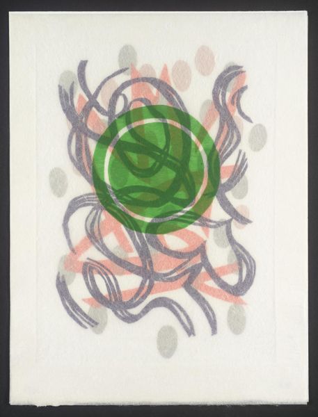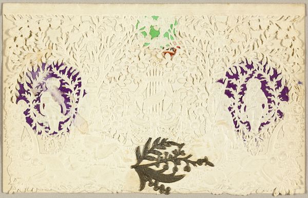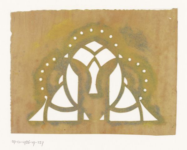 Reinier Willem Petrus de Vries made this Sjabloon met ornament sometime in his life with paint on paper. The colour palette in this piece is really intriguing, and the approach to mark making, suggests an understanding of artmaking as a process that's about playing around and seeing what happens. Looking at the material aspects of the work, it's all about texture and colour and surface. You can see the physicality of the medium, how the paint is both thin and opaque. I can almost tell what kinds of brushes may have been used in its making, and how the process is both concealed and revealed at the same time. These elements shape our emotional experience of the artwork and contribute to its conceptual resonances. See the way the colours merge in the middle? It's very subtle but also striking. It feels a bit like the work of Hilma af Klint, who played with some similar imagery. It has an ambiguity that makes it hard to pin down, which is, of course, the point.