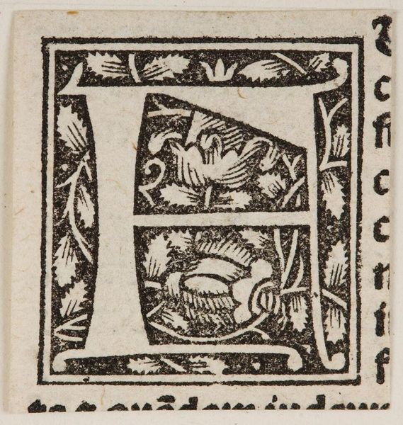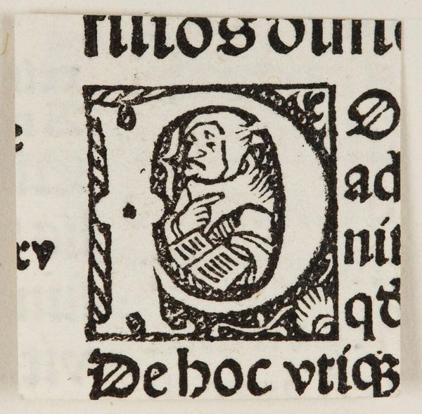 Curator: This is "Initial P," an anonymous work housed here at the Harvard Art Museums. Editor: It’s like a tiny, fierce world held within that letter! The grittiness gives it this medieval, almost primal feel. Curator: As a woodcut, the creation of this initial involved a subtractive process, demanding skilled labor to carve away the block and reveal the design. Consider the social role of printed initials in disseminating text and shaping early literacy. Editor: I see a little dragon curled up inside, guarding the meaning. It makes me think about the power words hold, how they can both illuminate and obscure. Curator: Absolutely. The image would have been reproduced many times over, each impression a result of material contact between the block, ink, and paper. The wear and tear on the block would have gradually altered the final prints. Editor: It's amazing to think of all the hands that touched this, the stories it helped tell. Tiny but mighty. Curator: Indeed, it prompts us to reflect on the interplay of art, craft, and the machinery of knowledge production. Editor: I’m taking away a renewed appreciation for the unseen labor that makes words appear on a page.