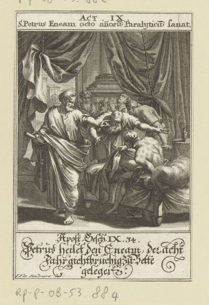 This print, Apostle Paul Has a Vision of a Macedonian Man, was made with metal, likely copper, by an anonymous artist. The process used was engraving, where the artist carves lines into the metal plate; these lines then hold ink, which is transferred to paper under pressure. Look closely, and you can see how the relatively slow and painstaking method of engraving determines the overall look of the print. Notice the fine, parallel lines that create tone and shadow. The hatching defines form, and the cross-hatching adds depth. Engraving was a skilled trade, often associated with printmaking workshops that mass-produced images for a growing market. The labor involved in creating such a detailed image would have been considerable, reflecting both the artisan's skill and the economic realities of the time. The prints were relatively democratic because they were affordable, and helped to spread the word of the Bible. The use of this medium emphasizes the importance of craft and production in understanding its cultural impact.