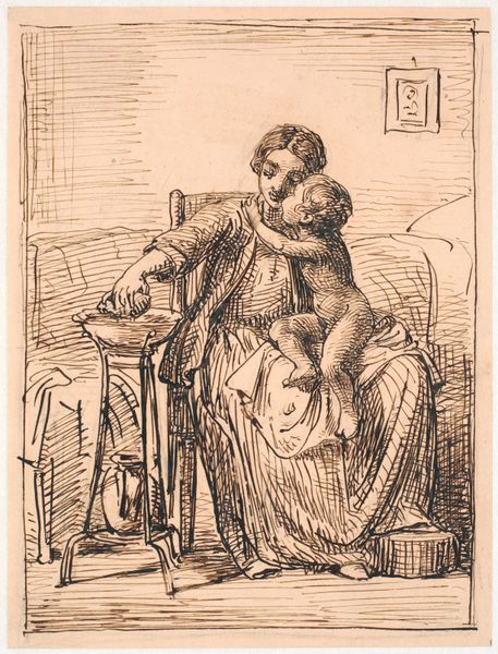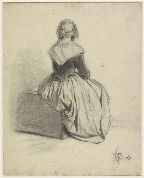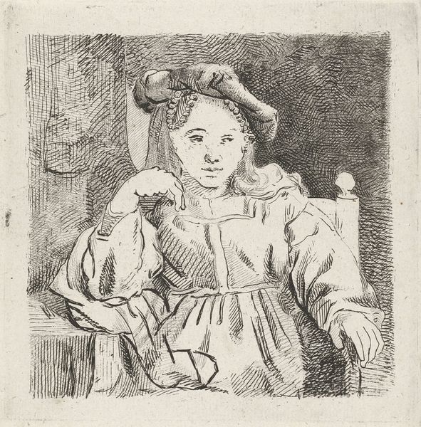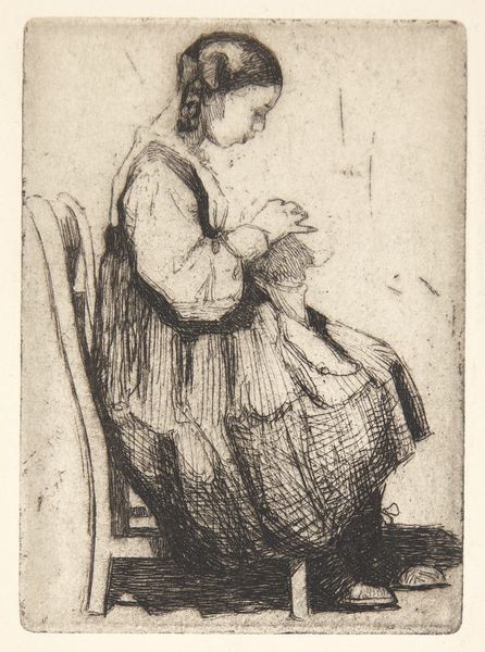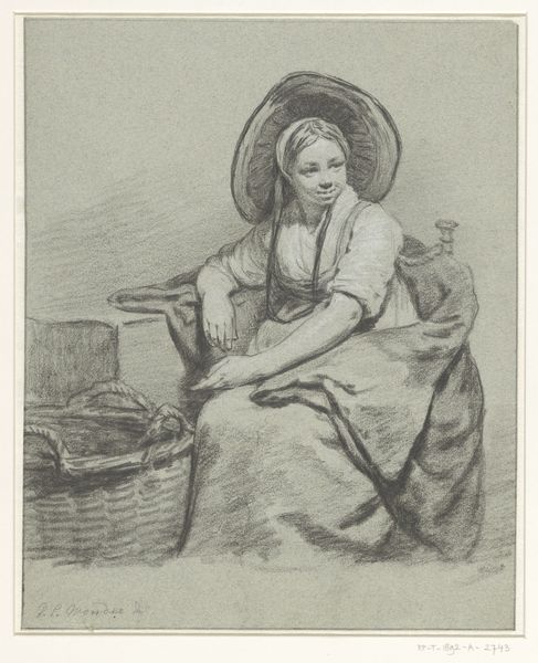 Curator: Isn’t she captivating? I find this unassuming work incredibly moving. We’re looking at Jean-Baptiste-Siméon Chardin’s "Girl Eating Cherries," a chalk and graphite drawing, date unknown, but full of quiet beauty. Editor: Absolutely. It’s immediately striking how self-contained she is, almost melancholy. The muted tones and her downcast eyes give off a very introspective vibe. There's such simple stillness, though, especially given the period! Curator: Yes, and for Chardin, this kind of intimate genre scene was everything. Unlike many artists of his time, he largely turned away from the grand historical paintings and allegories favored by the aristocracy. He was interested in capturing the small, beautiful moments of everyday life. How… radical is that? Editor: Radically relatable, actually! One wonders about the cultural shift occurring that enabled Chardin to create works depicting middle-class life. Certainly the patronage for art-making and tastes for art-viewing had to come from a broadening base of citizens, correct? Curator: Exactly. It speaks to a shift in societal values, a growing appreciation for the domestic sphere. But, look at her dress, its folds suggested with such economy! The chair, the basket… He's able to create this whole little world with such seemingly simple means. Almost as though he himself sees these spaces with such tenderness. It's a light drawing, but there's such depth within. Editor: Indeed. There's a certain naturalness to it. He clearly studied her form and dress—though it's rendered so sketchily, almost conversationally. Consider that his drawings such as this would circulate for years to come via reproduction technologies such as engraving. His audience base spread across Paris, all clamoring for genre paintings and realistic art depictions of everyday people. This aesthetic spread through artistic practices of Europe over decades that followed! Curator: Oh, for sure. The piece transcends its own time, and really whispers across the centuries! Chardin, in his own quiet way, makes the viewer appreciate that pause in an otherwise likely fast and changing world. Editor: It certainly provides some fodder for us to sit with now and appreciate still today. Well put.