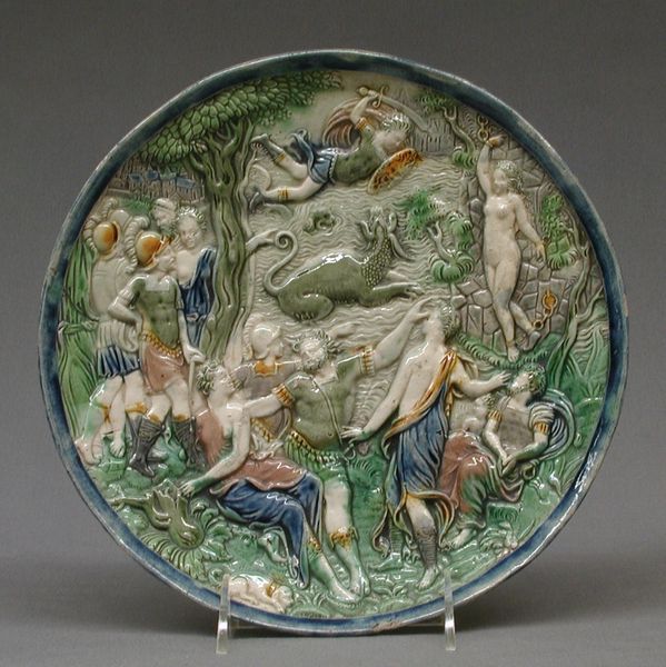 This enameled earthenware plate was created by Bernard Palissy in sixteenth-century France. Palissy was a self-taught potter, who was originally trained as a surveyor. His background outside the traditional art world led to him to create highly individual works such as this. At a time when artists were employed by the court and religious institutions, Palissy created his own market through these decorative objects. Through an encyclopedic knowledge gleaned from scientific texts and direct observation, he aimed to make accurate representations of the natural world. The level of relief and detail in the images suggests that Palissy was a master of mould making, creating a range of different products to suit different tastes. Understanding the context surrounding an artwork helps to interpret its meanings: museum records, historical documents, and scientific analyses are just some of the many research tools we can use. It is essential to remember that the meaning of art is not fixed, but is always dependent on its social and institutional context.