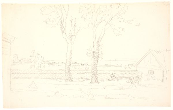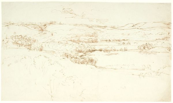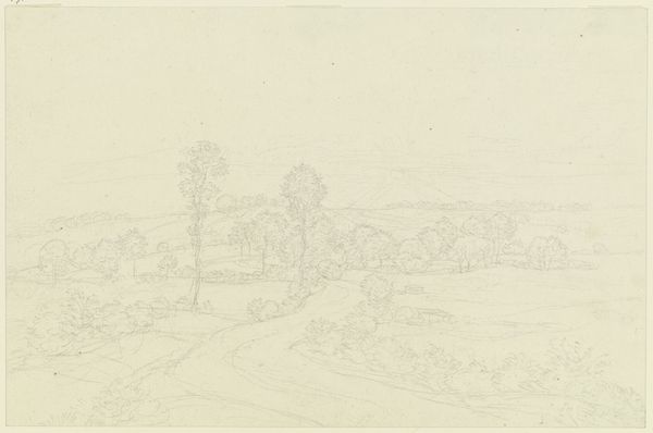 Ludwig Metz’s landscape drawing invites us into a world rendered with delicate precision. Its composition, almost monochromatic, centers around the structural interplay of horizontal and vertical elements. The landscape, divided into distinct layers, presents an exploration of space and perspective. The buildings and trees in the foreground are captured with geometric lines while the hills roll into the distance, dissolving into soft, suggestive marks. This formal structure may evoke a sense of serenity. Metz's technique, which emphasizes line over form, challenges the traditional notion of landscape as a mere representation of nature. Instead, he uses the landscape as a canvas to explore the fundamental components of visual language. Notice how the careful arrangement of space and shape creates a landscape that is both familiar and strangely abstract. In this drawing, Metz invites us to contemplate the very essence of perception and representation.