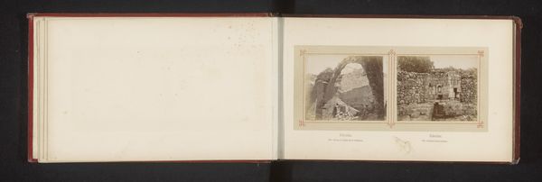 Curator: This is an albumen print, a photograph really, taken before 1862 by Louis-Alphonse Davanne. It's titled "View of the Pont Saint-Louis in Menton." Editor: My first impression is one of striking verticality and compression; that bridge feels squeezed, doesn't it? The scale is so deceiving until you realize that bridge is dwarfed by monumental rocks. Curator: The choice of the albumen process gives the print a certain tonal richness and depth, wouldn’t you agree? The gradations between light and shadow emphasize the sheer mass of the cliffs around the bridge, its textural qualities almost palpable. Editor: Yes, and this pre-industrial bridge is situated on the border, that feels symbolic in itself. I get the feeling of transition, a boundary being crossed or linked – an invitation from one place to another. Pont Saint-Louis sounds… well, holy, with a slightly sinister feel – those looming rock formations convey something solemn and untamed. Curator: Intrepretations of names aside, it functions visually to cut into two clear but related parts. On the upper segment, we find only stone and flora, unblemished, above that built, level plane. A separation between domains. The material realities that underpin human aspiration! Editor: Well, aspirations always bump into nature, or some material reality. That span acts as more than just architecture to me; bridges connect past and future and symbolize safe passage. But in Davanne's image, this safe passage sits under these towering rock faces—reminding you of the immense, raw, overpowering forces of nature itself. Perhaps nature will remain as a symbol that outlives this progress, the past’s imprint on the now and future! Curator: Very good, and consider how it prompts us to reassess perspective, light, and substance when captured through photography's emerging gaze at that time. In short, the formal elements create narrative. Editor: Yes, a poignant story emerges; I feel a slight disquiet despite its overt beauty and compositional ingenuity. It feels melancholic and imposing all the same.