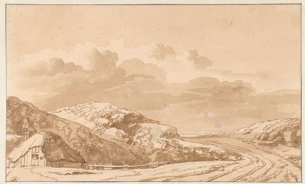 Arnoldus Johannes Eymer made this pencil drawing of a path in a hilly landscape sometime in the first half of the 19th century. Eymer's artistic career took place during a time of significant social and political change in Europe. Looking at this landscape sketch today, we can think about the relationship between nature and culture, between the land and the human presence upon it. Who is this path for? A solitary traveler, perhaps a worker making their way home? The path suggests connection, but also perhaps labor. The path cuts through the land, simultaneously creating access and enacting a form of mark-making. Consider the role that landscape has played in the construction of national identity, and the ways in which artists have either reinforced or challenged these narratives. How does Eymer's work contribute to or depart from the artistic and cultural conventions of his time? Does it evoke a sense of belonging, or does it hint at the social and economic forces shaping the land?