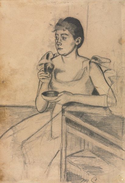Eugene Speicher created this drawing, "Woman Lost in Thought," using graphite on paper. Immediately, the soft grayscale palette evokes a mood of introspection and quiet contemplation. The composition centers on the woman's face, her gaze directed slightly off-center, which contributes to the overall pensive atmosphere. Speicher's handling of line and shading is particularly noteworthy. He uses delicate, almost tentative lines to define the woman’s features, capturing a sense of vulnerability and interiority. The subtle gradations of tone create volume and depth, yet the sketch retains a lightness, avoiding heavy, definitive contours. This careful modulation of light and shadow not only shapes the figure but also enhances the emotional depth of the piece. The woman’s posture, with her hand gently supporting her chin, suggests a moment of pause, inviting viewers to consider the nature of thought itself. The formal qualities of the drawing, such as the delicate lines and soft shading, work together to communicate a complex emotional state, reflecting the Modernist interest in exploring psychological depths through artistic expression.