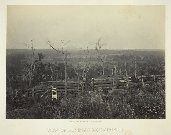 George N. Barnard captured "Battle Ground of Resacca, GA, No. 3," using photography, presenting a landscape seemingly devoid of life yet teeming with the remnants of conflict. Barnard masterfully uses a monochromatic palette, emphasizing the textures of the devastated environment. The composition directs the viewer's gaze from the foreground's dense, disrupted undergrowth towards the skeletal trees reaching into the sky, before finally settling on the horizon. The photograph operates on a semiotic level, where each element signifies loss and disruption. The broken trees and uneven terrain are visual signs of the battle's impact, challenging any romantic notions of war. Barnard uses the photographic medium not just to document but to dissect the brutal reality of the American Civil War. He destabilizes the traditional landscape genre, infusing it with a stark commentary on the cost of conflict. Through the detailed depiction of destruction, Barnard invites us to contemplate the unseen forces that have shaped this landscape and the broader implications of historical events.