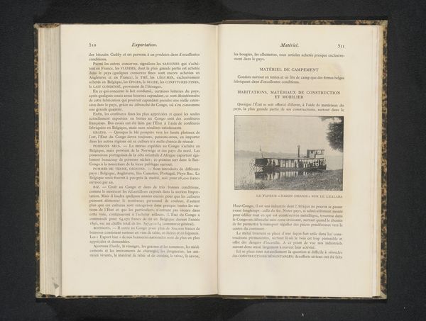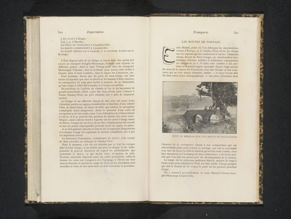 Curator: We’re looking at an image titled “Pier van Boma met mensen,” translating to “Pier of Boma with People," dating to before 1892, of which photography is the key medium. The work seems to be embedded in a book page. What strikes you first? Editor: A melancholic feeling. The pier stretches towards a distant point, almost fading into the fog, dwarfing the human figures gathered along it. It feels transient, a place of arrivals and departures. The sea of the background seems to be of considerable weight for its influence on the entire imagery. Curator: The photograph offers a rare glimpse into late 19th-century public works. Consider how access to infrastructure reflects social and political priorities, influencing movement, trade, and colonial expeditions during that era. It really captures that. Editor: Precisely. Symbolically, a pier represents connection – a link between land and water, civilization and the unknown. However, this image projects isolation, emphasizing the pier’s vulnerability. There's something forlorn in the composition of the workers themselves. Curator: I think it captures a society caught between progress and an unknown future, reflected in its relationship with technology and resources. Note how the industrial development and social reality contrasts starkly within the single frame. It speaks volumes about colonial expansion in the late 19th century. Editor: It suggests the ephemeral nature of progress itself. Piers are built structures, meant to endure, yet they are constantly subjected to the ocean's forces and human wear. Their very purpose is in a way against natural and temporal currents. Curator: True, viewing it through our modern perspective, the print resonates more deeply. It prompts us to consider the human cost of progress, as we witness structures rise. And question their significance against natural events. Editor: Ultimately, this little image stirs great historical currents in our collective awareness and I appreciate that. Curator: It makes you pause and imagine stories of countless individuals, that really connects to modern audiences.