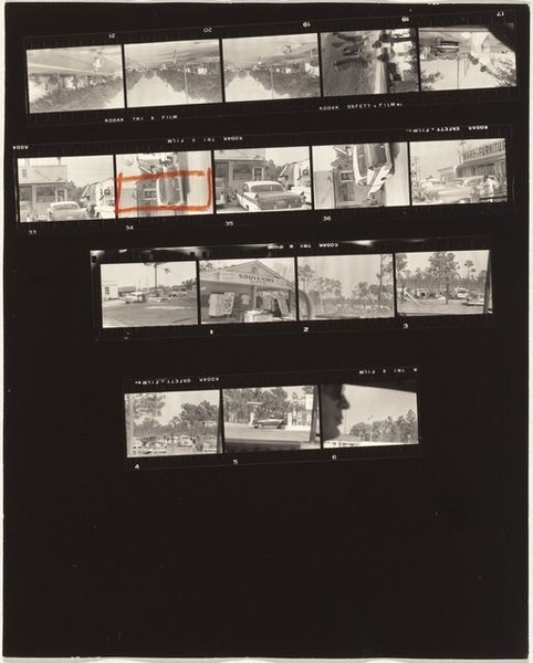 Robert Frank made this sheet of contact prints, his ‘Times Square--New York City 3’, using a camera and photographic paper, as a way to see what he'd captured. It's a document of a process, like a painter's studies. What strikes me here is the honesty of the medium, showing all the images at once, good and bad. The high contrast and graininess aren't hiding anything, they're showing the grit of the city. There's a red square around a shot, but it's hard to say if Frank thought it was a good one or not. I find my eyes drawn to the reflections in the shop windows, distorted and strange, hinting at hidden realities. Frank reminds me of Walker Evans, but grittier, more immediate. It’s a kind of anti-aesthetic, embracing the messiness of life rather than trying to tidy it up. And, that's where the beauty lies, in those raw, unvarnished moments.