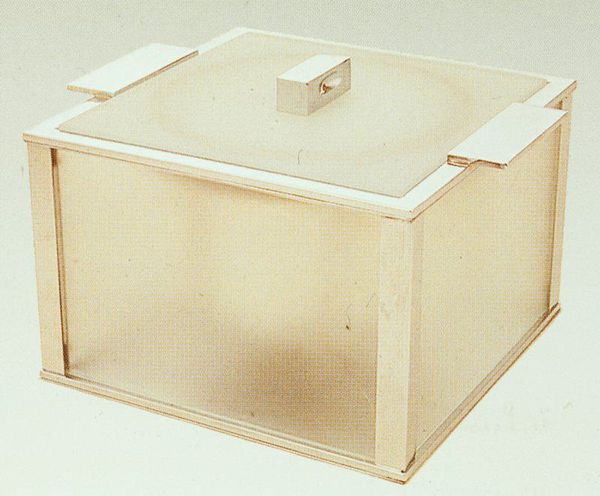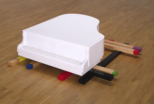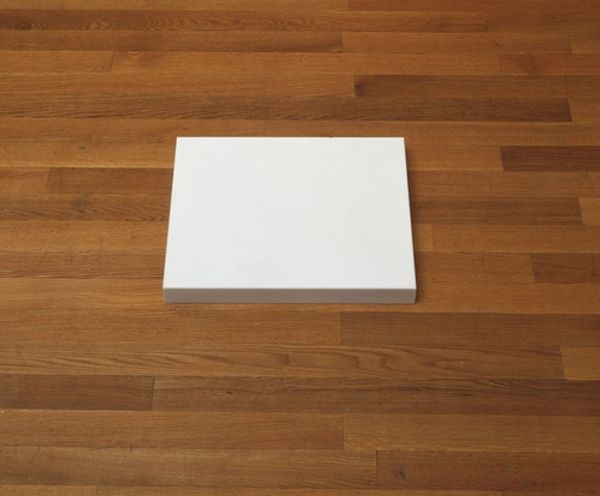 Tea Jorjadze's Untitled piece seems to be a construction made from pale wood and a cool, smooth surface – maybe it’s painted or a laminate? The way these different components come together feels very intuitive and process-oriented, like one form grew out of another in a kind of slow dance. I’m struck by the contrast between the raw, unfinished feel of the wood, and that totally flat, grey-blue rectangle. It’s so sleek and even, offering no trace of the hand. Then you have these little white blocks arranged along one edge, which introduce a playful, almost architectural element, like little modernist sculptures. I’m reminded of the work of Franz West. His sculptures also have that provisional, off-kilter quality. This piece seems to suggest that art doesn’t always need to be polished or resolved. Sometimes, it’s the open-endedness, the potential for change, that makes it interesting.