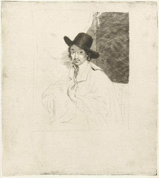 Louis Bernard Coclers created this etching, depicting the painter Adriaen van Ostade, with needle and finesse. The hat, casting a shadow upon the face, reminds us of similar portrayals across centuries, echoing through Rembrandt's self-portraits and even Caravaggio’s figures. This act of shading, a symbolic veiling, hints at the concealed depths within the artist’s soul. Consider how the hat, in its many forms, reappears—from the practical headgear of laborers to the elaborate adornments of nobility. It is not merely a covering, but a signifier of identity, status, and even hidden intent. Notice the subject's posture, the hand gently held. There’s a sense of contemplation. In the grand theater of human expression, such gestures recur, each time carrying a trace of what came before. The past, it seems, is never truly behind us. It resurfaces, evolves, and takes on new meanings in our collective consciousness.