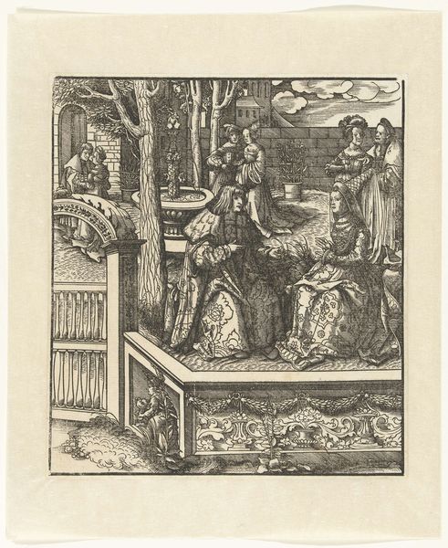 Gillis van Breen created this engraving, *De betrapte echtgenoot,* sometime around 1600. The image portrays a cuckolded husband, a theme rooted in early modern European anxieties about social order and morality. Van Breen renders the scene with striking emotional intensity. We see the husband reacting with a scream as his hair is pulled, while his wife is being felt up. What does it mean when intimacy is observed, manipulated, and commodified? The image is a powerful articulation of both the shame and the economics of infidelity. The composition has the man on the left, being pulled towards the woman on the right, almost trapped in the image. The setting creates a feeling of enclosure and surveillance. The text beneath the image offers a moralizing commentary, further reinforcing the social norms and expectations of the time. This work reveals a fascinating interplay between personal experience and collective values, reflecting the complex dynamics of gender, class, and reputation in early modern society.