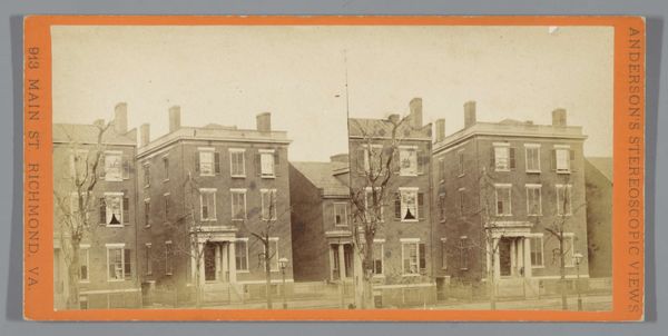 Curator: Let’s talk about “Gezicht op de Wittenberg te Amsterdam” – a gelatin-silver print from around 1880 to 1915, attributed to Gebr. van R. Editor: It has a somber feel to it. The monochromatic palette and still water lend the image a sense of quiet contemplation, as though the photographer was making an honest record of everyday life and civic duty. Curator: Right. The use of gelatin-silver printing was becoming increasingly common, influencing the level of detail we see here. This method made mass reproduction easier and more economical. Notice the brickwork and reflection in the water, but more important than this fine detail are the changes happening in society due to the impact of photography in disseminating the Realist art movement to ever wider audiences. Editor: It's clearly a cityscape, though a very ordered one. The building, dominating the composition, exudes a sort of bureaucratic calm, it really seems to symbolize that transition in civic duty, to something altogether more bureaucratic and administrative. The choice of such a functional architectural style must reflect on its contemporary culture, too. Curator: Absolutely. I am sure the intent here was to capture and represent Amsterdam through what seems to be a functional, straightforward architectural style, emphasizing structure over anything aesthetically fanciful, something which came about with increased urbanism throughout Europe. And although that’s likely the reason for the photographic documentation and composition style, one cannot underestimate the gelatin-silver print, as well as its effects on material culture in Amsterdam around this time. Editor: I find it interesting how different movements, like Realism, utilize various methods for their media depending on time and technological capability. I will definitely be considering how the photographic print in itself is key to that experience from now on. Curator: It gives us something new to reflect upon.