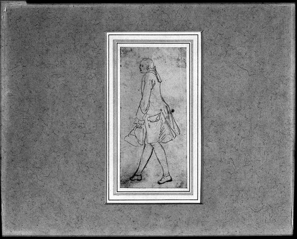 Curator: Welcome. Here we have Ernest Meissonier’s drawing, "Woman in 17th-Century Costume," housed here at the Harvard Art Museums. Editor: Mmm, it’s quite ghostly, isn’t it? A flash of silk and shadow… almost feels like she’s fading away. Curator: Indeed. Meissonier, born in 1815, was renowned for his historical genre paintings. This piece, though undated, reflects his meticulous attention to detail, particularly in rendering clothing. Editor: I’m curious, what does it tell us about 17th-century perceptions of women, or even Meissonier’s own views, do you think? Was he romanticizing or critiquing? Curator: It’s more a study, I believe, less about making a statement on gender roles, and more about his fascination with historical accuracy. It’s a rehearsal for another, larger composition. Editor: Perhaps. Still, I sense a certain melancholic distance about her. A fleeting presence, caught in a moment. Curator: Perhaps we are projecting our own anxieties onto her, seeing what we want to see, through the prism of contemporary social critique. Editor: Isn’t that the joy of art?