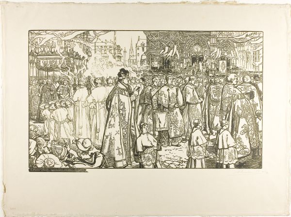 Curator: Before us hangs "Zaal der Natuurkunde in Felix Meritis, 1789," rendered in 1801 by Reinier Vinkeles. It’s an engraving that offers us a glimpse into the scientific world of late 18th-century Amsterdam. Editor: The sheer detail of the crosshatching to give the print its depth is really extraordinary; what's even more compelling to me is that we’re peeking in at such an august assembly – very theatrical with its rising tiers and central demonstration. You feel as though you're in the audience. Curator: Absolutely. Vinkeles masterfully uses line to articulate the architecture and the figures. Look how the light falls, shaping each individual, contributing to a coherent spatial structure and dramatic dynamic. The composition guides our eye towards the speaker, framed within this architectural marvel. Editor: It really makes you wonder about the construction of that space, and the resources invested in such an enterprise for education and scientific advancement. The elaborate chandelier suggests civic pride and even wealth, a sort of performance stage for science. I want to know how they produced the ink, the quality of the paper they used, and how many impressions were made. What did they use it for? Who was it for? Curator: A fine set of questions. While, of course, considering its Neoclassical elements – the balanced composition, the rational presentation – we can consider the social climate, which suggests Enlightenment ideals: progress, reason, the public dissemination of knowledge. Vinkeles shows us not just a room, but a physical manifestation of intellectual ambition. Editor: Agreed. Thinking of it from that perspective, it's interesting to observe how such spaces foster certain behaviors and exclude others. The very materials and design contribute to shaping knowledge and its dissemination – and this print acts almost as a promotional or documentation tool. How would people know of such institutions, such learning spaces, otherwise? Curator: A prescient observation indeed. We can view the print’s meticulous composition, the clarity of line, as echoing that desire for clarity, for truth, in scientific endeavor itself. Vinkeles elegantly portrays this symbiosis. Editor: Reflecting on this intaglio print, it reminds us that even something seemingly simple carries deep layers of meaning when we explore its making, and how its social function shaped it. Curator: I concur. Analyzing its form allows us an elegant entrance into a broader historical understanding.
