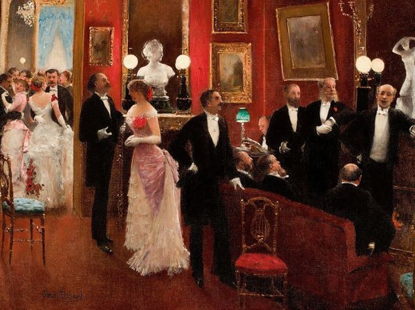 Jean Béraud painted ‘Personnages’ which depicts an intimate musical performance in what appears to be a private salon. Béraud’s artistic career coincided with a period of significant social and political change in France. His paintings often captured the nuances of Parisian life during the Belle Époque, a time characterized by optimism, peace, and cultural innovation, which followed the Franco-Prussian War. The painting invites us to consider the role of women in the upper echelons of late 19th-century French society. As women were often confined to the domestic sphere, their identities were closely tied to their social roles and appearances. The painting shows an awareness of the aesthetic and cultural values of the time, particularly in the realm of classical music. Yet, at the same time, we can ask whether the passive posture and elegant attire of these women are representative or restrictive. Ultimately, ‘Personnages’ serves as both a mirror reflecting the values of its time, and an invitation to look more closely at the lives and identities of the people depicted.