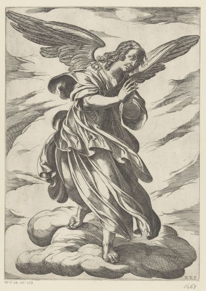 This tiny engraving of an angel was made by Giorgio Ghisi in the 16th century. It's one of nine surrounding compartments, now separated, from the Virgin of Sorrows. Ghisi was a master of the printmaking technique known as engraving. Using a tool called a burin, he would have painstakingly carved lines into a copper plate. This was a highly skilled, labor-intensive process demanding precision and control. The depth and density of the engraved lines determine the amount of ink held by the plate, and therefore the tonal range of the print. Look closely, and you'll see the incredible detail Ghisi achieved, from the delicate feathers of the angel's wings to the folds of fabric. Engravings like this were part of a burgeoning print market, allowing images to be reproduced and disseminated widely. Though seemingly worlds away from mass production, the engraving process laid groundwork for future industrial reproduction. It's a powerful reminder that even the most handcrafted objects can be understood in relation to broader economies of labor and consumption.