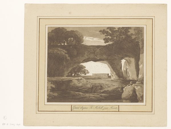 Johann Christian Reinhart made this print of the interior of the tomb of the Nasoni family near Terni. Reinhart was a German painter and engraver who spent much of his career in Rome, where he became part of a community of artists captivated by the Italian landscape. This print showcases the era's fascination with ruins and their sublime assimilation into the natural environment. We see the way the decaying architecture of the tomb blends with the overgrown foliage and rocky terrain, symbolizing the passage of time and the inevitable decline of human-made structures. Reinhart was working at a time when the academic art institutions were hardening and the free expression of individual artists became more difficult. We can read this image as a quiet rejection of those institutions and a celebration of the freedom of the landscape. To understand this image better, you could look at guidebooks and travelogues from the period, which reveal how the experience of the picturesque Italian landscape was understood and consumed by northern European visitors.