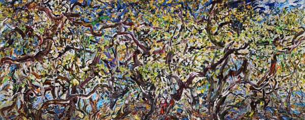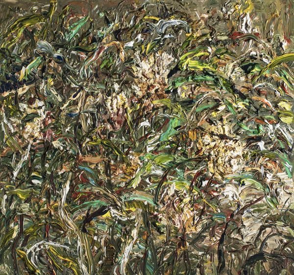 Wang Xinfu made this oil painting called 'Winter Lotus Leisure' with thick brushstrokes, creating a textured and layered surface. The image presents a dense thicket of reeds and foliage rendered in muted winter colors, with only slight suggestions of a traditional lotus pond. In China, the lotus is a potent symbol, representing purity, resilience, and spiritual awakening within Buddhist and Confucian traditions. The choice to depict it in winter, seemingly barren, might be a comment on the state of these values, or perhaps the painting is a symbol of hope for renewal. We might ask, what social commentary lies beneath this surface? Is this depiction of natural decay a metaphor for the transformations China has undergone? To fully understand Wang Xinfu's work, we need to consider its place within the complex history of Chinese art and its institutions. This is where the art historian steps in, using archives, publications, and cultural studies to understand better the social life of art.
