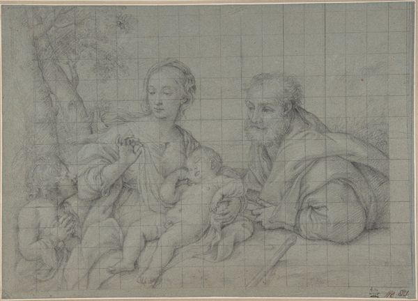 Editor: This drawing, "Zwei Trinkende in Halbfigur," is attributed to Polidoro da Caravaggio, and although undated, it is assigned to the 16th century. Executed in pencil and chalk on paper, it depicts two figures sharing a drink. There’s something very informal about it; it's almost as if we are spying on them. What strikes you when you look at this piece? Curator: What jumps out at me is the direct engagement with the *process* of producing a drawing in 16th century Italy. Look at the paper itself – the groundwork for the artistic labor, chosen perhaps for cost or availability. And the layering of pencil and chalk - a pragmatic choice to achieve tonal variations. This isn't just about depicting figures, but about exploring readily available materials and techniques. Think of it as the very act of creation made visible, showing the hand of the artist, the source of its value and social currency at the time. Editor: That’s fascinating! I tend to focus on the composition itself, and I never considered the choice of materials as making any statements about accessible art making. So you're saying the economic status influences how and why an artist draws something like this. Is this how drawing evolved into other applications like mapping? Curator: Exactly. Mapping and drawing originate from same place! In this work, it reflects a kind of immediacy and utility of artistic production. This drawing embodies a functional interaction of material, skill, and social circumstances rather than some divine intervention we may not always notice. Editor: I never really considered the physical aspects of the piece itself as speaking so directly to the society in which it was made! Thanks so much for this perspective. Curator: Of course! Reflecting on process gives a fresh viewpoint.