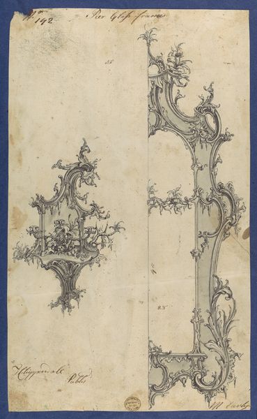 Thomas Chippendale made this drawing of cornices on a sheet of paper sometime in the 18th century. The drawing presents six variations of cornice designs, each rendered with precise lines and subtle gradations of shading. The cornices curve and undulate, punctuated by ornamental flourishes. The overall effect is one of ornate elegance. Chippendale’s drawings reflect the period's fascination with ornamentation and its cultural significance. The symmetrical structure of each cornice, combined with asymmetrical decorative elements, creates a visual language of power and sophistication, intended to communicate the refined tastes of their patrons. His work challenges notions of simplicity, opting instead for a layered visual experience that invites the viewer to decode its complex patterns. The emphasis on detail invites contemplation on the relationship between form and function, suggesting that even purely decorative elements contribute to a broader understanding of cultural values. The drawings remain a testament to the era's aesthetic sensibilities, offering a lens through which to examine the intersections of art, design, and society.