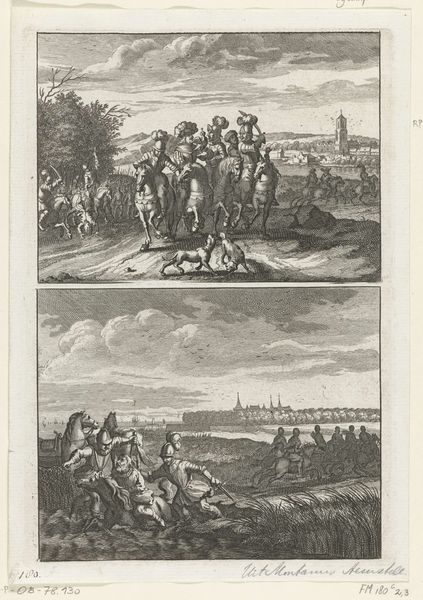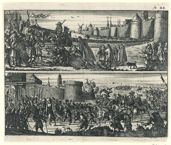 Editor: This print, titled "Europeans Tortured and Killed by the Chinese," was created by Johannes van Baden in 1675. It is an engraving that illustrates two scenes. The violence on display is disturbing, but the rendering, in simple lines, lends it a remove. What catches your attention about it? Curator: As a materialist, I focus on the labor and process involved in creating such an image, and the social context it reflects. Engravings were a key form of mass communication in the 17th century, a means of disseminating information and shaping public opinion. Consider how the print medium itself, as a repeatable and reproducible commodity, contributes to the spread of these propagandistic narratives. What do you think the effect of distributing this imagery to a wide audience could have been? Editor: That’s a really interesting perspective. It never occurred to me to think about it in terms of mass media. The details of torture almost feel like information, but now that you mention the effects on audiences…well, I guess this print serves to demonize the "other," stirring up xenophobia and prejudice. Were these kinds of depictions common then? Curator: They were, absolutely. Consider the market for these images. Who was buying and consuming them? Likely it was the burgeoning merchant class in Europe who had invested in colonial ventures, eager to confirm their prejudices and perhaps soothe their consciences about exploitative trade practices. And notice the details – are they accurate? Probably not. They are fabricated and meant to inspire fear. It seems as though the making and distribution of this print reveals the workings of power in early global capitalism. Editor: So, analyzing this image, not just for what it depicts, but for how it was made and distributed, reveals so much more about the historical and social forces at play. It moves it away from just a depiction of torture to evidence of cultural attitudes, almost. Curator: Exactly. Examining the means of production alongside the social context, helps us to challenge the apparent simplicity of the image. It highlights how this image functions as a piece of material culture, actively shaping understanding and reinforcing power dynamics. Editor: This gives me so much to think about, from production to purpose, not just aesthetic style. Thanks for that!