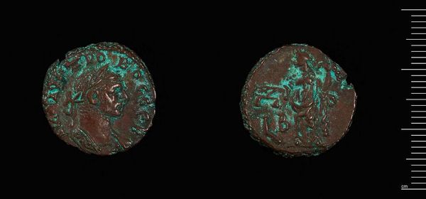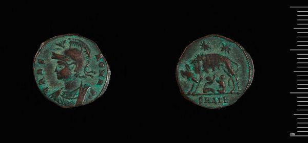 Curator: This is a tetradrachm of Alexandria under Tacitus. Its 8.4 grams offer a glimpse into the economic and material conditions of its time. The verdigris patina speaks volumes. Editor: It has a ghostly, ethereal quality, almost like a relic pulled from the sea. I wonder what stories this coin could tell about power, identity, and exchange in the Roman Empire. Curator: Indeed. The means of production for such coinage—the mining, refining, and minting processes—involved considerable labor, impacting trade routes and socio-economic hierarchies. Editor: Absolutely. And the representation of Tacitus himself, likely idealized, reinforces the emperor's image and authority, influencing how he was perceived and remembered. These coins circulated among diverse populations, shaping their understanding of Roman rule and its cultural values. Curator: A compelling point. It's a tangible reminder that even the smallest objects can reveal a great deal about the systems that produced them. Editor: Yes, it reminds us to examine not just the aesthetic but also the historical and social narratives embedded within the art object.