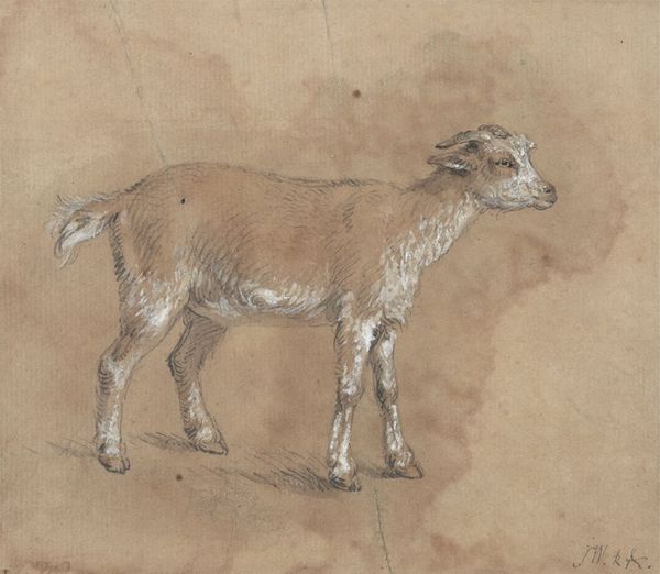 George Harvey's "Dogs" captures your attention with its minimalist composition and earthy tones. The arrangement of loosely sketched dogs on a muted background creates a sense of immediacy. The composition is strikingly simple: four studies of dogs are oriented differently on the page. This arrangement isn't about creating a realistic scene; it's about exploring the form and presence of the animal. The use of light and shadow is minimal. Harvey seems more interested in capturing the essence of his subject through line and shape. We might see how this piece destabilizes the traditional role of animal portraiture. Rather than idealized representations, we are presented with raw, almost casual sketches that highlight the animal's form. The semiotic value lies not in precise detail, but in capturing the essence of "dog-ness" through minimal means. Ultimately, "Dogs" functions as a study in form and perception. The simplicity of Harvey's approach challenges us to reconsider how much information is needed to convey the essence of a subject. It is a reminder that artistic meaning resides not only in detail, but also in suggestion.