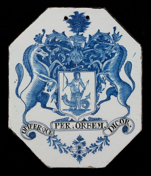 This armorial plaque was made in Delft, in the Netherlands, in 1687, by an anonymous artist. The image speaks of a society steeped in symbolism and social hierarchy. Heraldry, with its codified language of emblems and colors, was a visual shorthand for lineage, status, and power. Delftware, the tin-glazed pottery of the region, was a burgeoning industry, buoyed by the Dutch Golden Age's economic prosperity. This plaque wasn’t merely decorative; it was a statement, a claim to identity within a complex social structure. The specific imagery – the figure of the god Neptune, the horses – would have resonated with contemporary audiences, conjuring associations with maritime power and aristocratic virtue. The Latin inscription, meaning "I am said to bring help throughout the world," possibly alludes to the family's mercantile activities. To truly understand this object, we must delve into the archives, tracing the families who commissioned such pieces and the artisans who produced them. Through such research, we can begin to reconstruct the social and institutional contexts that shaped the production and reception of art in 17th-century Netherlands.