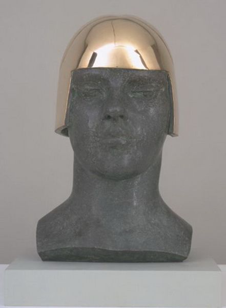 This work is based on a cast taken from the head of a living model named William Jeffrey. Casting from life involves encasing the sitter's head in wet plaster. After this has hardened, the resulting mould is taken apart in sections, and from this a cast in fibreclass is made. The advantage of this process is that an exact facsimile of the subject's features is obtained. Despite their precision, Davies has observed that life casts communicate little about the subject's character. Also, this realistic cast incorporates the strange addition of cones of chicken wire placed over the face. Consequently, this head does not characterise an individual, but represents human personality in general. Gallery label, August 2004