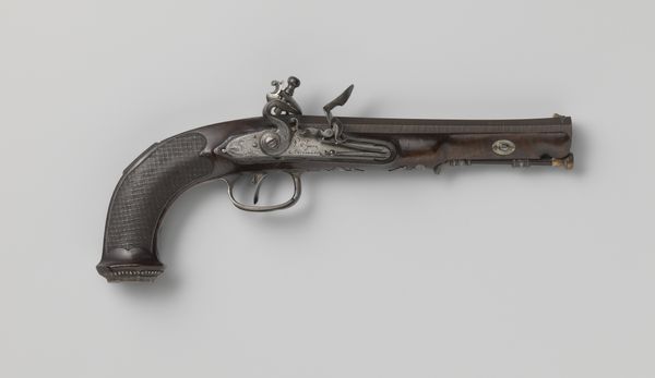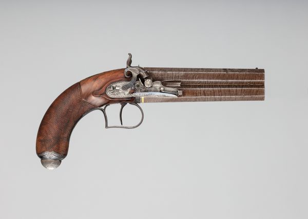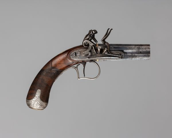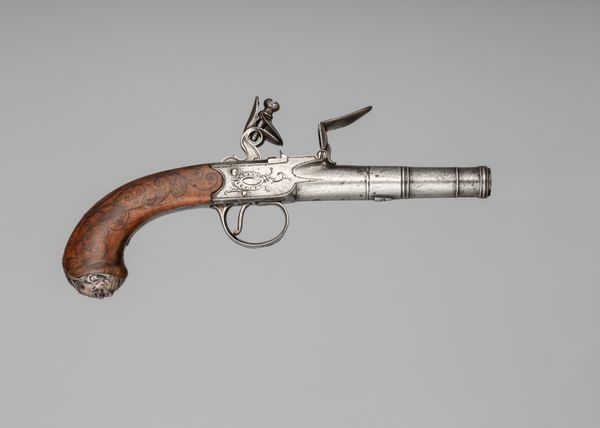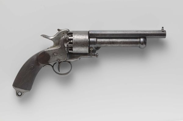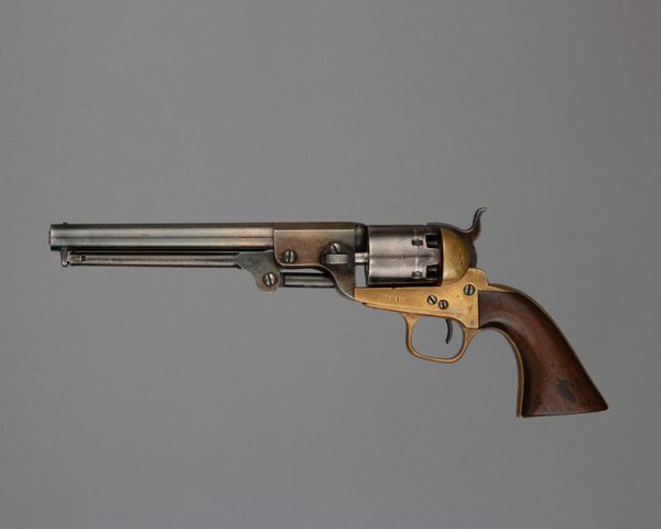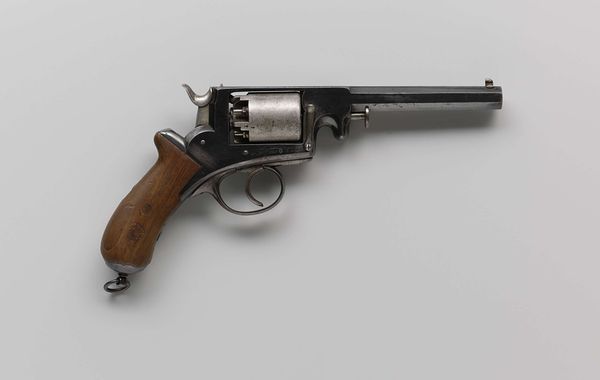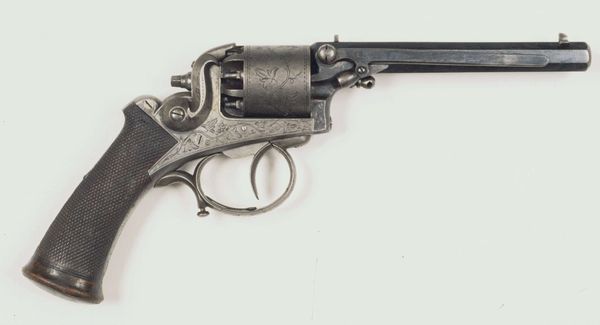 Editor: Here we have a Smith and Wesson .44 New Model No. 3 Single-Action Revolver, dating anywhere from 1863 to 1913. It's quite ornate; the handle is covered in engravings. It’s a beautiful object, but obviously meant for violence. What do you see when you look at it? Curator: I see a complicated dialogue about American identity. On one hand, the intricate carvings evoke a sense of artistry, elevating it beyond mere utility. On the other hand, it's undeniably a tool of force, a symbol often linked with the expansion westward and the conflicts inherent in that era. Do you think the decoration celebrates that violent history, or tries to obscure it? Editor: I hadn’t thought of that tension. It’s difficult to say! I initially saw it as decorative art. Almost like it was designed for some sort of powerful wealthy person, some sort of statement of power and wealth... Curator: That's certainly a valid interpretation. Wealthy ownership, access to advanced technology and arms – these things were undeniably social signifiers. Now consider its function not just as a weapon, but also a commodity. Its circulation reveals distribution networks, technological advancements, labor practices. Its decorative element, intended for consumer appeal, intersects with both economic and social histories. Does knowing this complicate your perception? Editor: Yes, definitely. Thinking about the economic impact opens my eyes. The details on the revolver – the labor, the material, its movement from the factory to a potential owner – become clearer now. It forces a certain degree of accountability that might otherwise have remained in the distant background. Thank you for drawing attention to it. Curator: My pleasure. Examining the multiple contexts transforms a seemingly straightforward artifact into a reflection on complex historical narratives. It demonstrates how we project meanings onto objects and also how material things shaped our lived experiences and values.