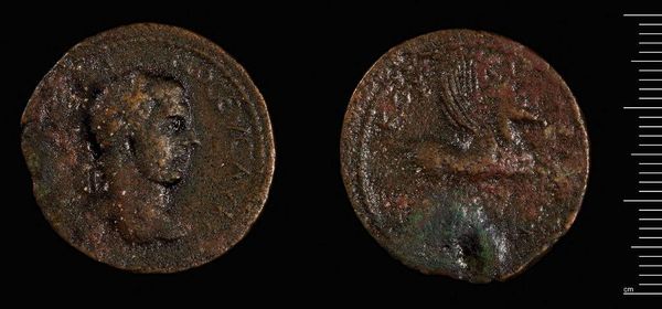 Editor: Here we have a coin of Apollonia under Commodus. It’s intriguing how a small object like this coin can tell so much about power dynamics in the Roman Empire. What do you see in this piece that speaks to that historical context? Curator: I see propaganda and power consolidated into portable wealth. Commodus's face, stamped on currency, speaks volumes about identity and the imperial cult. Consider how his image functioned, shaping public perception and reinforcing his authority. How might this coin engage with conversations about colonialism? Editor: That makes me consider its legacy. Curator: Exactly. These objects are tools that both reflect and solidify power structures. Now, consider how we, even now, participate in systems where wealth and power are intertwined. Editor: It's like the coin invites us to question the systems of power that shape our own world. Curator: Precisely.