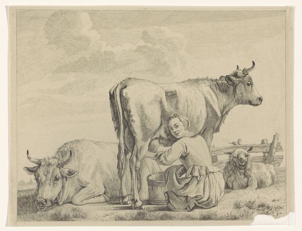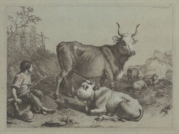 Francesco Londonio created this print of a Sleeping Shepherd, Two Calves, and a Peasant Woman in 18th century Italy. It depicts an idealized vision of rural life, a popular theme during the Rococo period. But these images often glossed over the harsh realities faced by peasants, the back bone of Italian society at the time. Londonio’s work invites us to consider the social and economic structures that shaped artistic production. Was he trying to address social issues, or simply offer an escape from urban life for his patrons? The image romanticizes country life and offers a window into the cultural values of the time. To fully understand the context of this print, we can turn to sources like agricultural records, economic surveys, and social histories, providing a more complete picture of the world in which it was created. Art is always contingent on its social and institutional context.