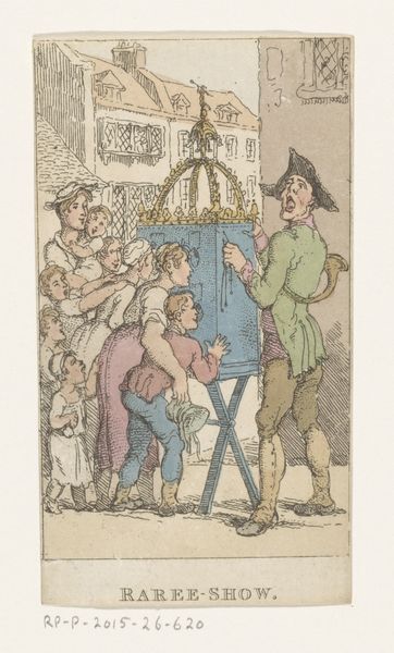 Curator: Looking at Theodore Lane's "Theatrical Pleasures, Plate 2: Contending for a Seat," a print dating from around 1830 to 1840, lithography and drawing combine to create this vibrant commentary on social behaviour. Editor: What a scene! Utter chaos and hilarity. It feels almost like a modern mosh pit but with more top hats and significantly less personal space. The energy practically vibrates off the page. Curator: Indeed. Lane masterfully captures the social tensions and absurdities of the theatre-going public. We see a clear class divide represented, from the relatively calm and collected boxes above, to the veritable scrum down in the stalls below. It speaks to how theatrical spaces became stages for social performance. Editor: The faces! They're just exquisite in their exaggeration. Pure caricature, reflecting the anxieties and eagerness of the time. I can almost hear the squawks and shoves as they fight for those precious seats. I feel like I’m getting whiplash just looking at it. Curator: This image taps into the broader history of how public spaces have been negotiated and contested, not just for leisure, but also for social mobility and visibility. Lane isn't simply making fun; he's holding a mirror to society's ambitions and anxieties. The emerging middle classes asserting their presence, sometimes clumsily, sometimes forcefully. Editor: It makes you wonder what Lane himself felt watching these events unfold, maybe with a mixture of amusement and maybe a little horror. It’s also pretty bold to capture those folks up top as unflattering types looking down on the 'peasants' struggling for their evening thrills. Curator: Absolutely. And through his caricatured figures and dynamic composition, Lane immortalizes a moment of cultural upheaval, reflecting shifts in power and the growing democratization of entertainment. Editor: You know, standing here contemplating this piece makes me question what sort of shenanigans we miss today in our digital era. Something is very vital being recorded here by Mr. Lane; a struggle and a fight for cultural recognition. The humanity, as raucous as it is. Curator: Ultimately, Lane gives us not just a humorous depiction, but also a potent snapshot of societal transformation, preserved within the seemingly trivial pursuit of theatrical pleasures. Editor: A tiny window into the cultural dynamics of the era; funny, a little cringe-worthy, but definitely eye-opening.