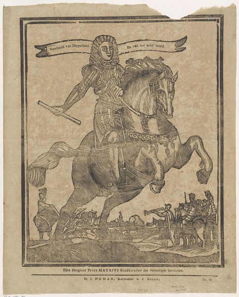 Curator: This is Ivan Bilibin's "Illustration for the fairy tale 'Vasilisa the Beautiful'," created around 1900. It’s done in tempera and also exists as a print, reflecting the artist's deep engagement with Russian folklore and the aesthetics of the Russian Avant-Garde. Editor: Woah. Right away, this has got a melancholic, fairy-tale-gone-gothic vibe. It’s moody; that dark horseman could be straight out of a Slavic Batman tale. And that frame! It looks almost Byzantine with its winged figures, very old world. Curator: Indeed! Bilibin’s illustrations played a crucial role in shaping a national artistic identity, particularly through revisiting and visually codifying folklore in a way that aligned with larger nationalist projects emerging at the time. Consider how it borrows from Art Nouveau and *Mir iskusstva*. It creates this incredible blend of folk tradition and fin-de-siècle artistic styles. Editor: I love the details – look at the horse’s expression, the knight's posture. He’s got such presence in the space even though he seems a little slouched! It's more than just illustration; it feels like character study, you know? And the colors, even the muted ones, sing! Curator: And consider that "Vasilisa the Beautiful" itself explores themes of female empowerment and navigating patriarchal power structures. Bilibin gives visual form to those elements within the story, from Vasilisa's resourcefulness, and the complicated figure of Baba Yaga to this image's focus on an ostensibly "heroic" rider—with layered meanings of knightly valor or possible villainy in tow. Editor: Hmmm... Layered like the inks. Do you get the sense, though, that there's a stillness to this despite all the apparent action? He isn't rushing headlong anywhere—that horse has slowed down to a deliberate pace, giving them space for both contemplation and dread. What's behind them, what's ahead—so effective in communicating inner journeys, I'd say. Curator: A fine point. That reading adds complexity to it by pulling in this rich interplay between folk and cultural narratives from that time and how its enduring relevance rests in precisely that capacity for multiple perspectives on these core tensions. Editor: It's a reminder, really, of how much the stories we tell ourselves can hold and reflect. A small portal.