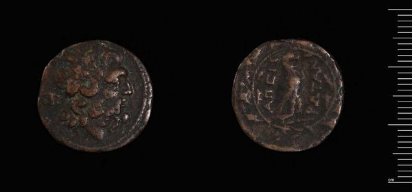 Editor: Here we have what’s believed to be a Drachm of Mithridates I, crafted by Arsaces I. This small coin-like object, only 3.52 grams, seems to depict a face on one side and a seated figure on the other. What do you notice about its visual construction? Curator: The object presents itself as a fascinating study in relief. Consider the contrast between the textures. On the obverse, the raised image of what appears to be a diademed ruler, with a high-relief rendering which gives it a sculptural quality. On the reverse, the seated figure is defined by incised lines, creating a flatter, more linear pattern. Editor: Are those intentional choices to draw attention to different elements? Curator: Precisely. The high relief commands immediate visual attention. How does the artist’s approach to line and form influence your interpretation? Editor: It seems like they are trying to elevate the status of the figure on one side, while simplifying the scene on the other. I’m struck by how the physical manipulation of the metal itself conveys meaning. Curator: Indeed. Close examination reveals how the artist has used different engraving techniques to create varied levels of depth and texture, adding a layer of meaning to this small object. Editor: So, even without knowing the historical context, we can interpret the artist's intentions through their manipulation of form. Thanks! Curator: You're very welcome. Understanding the interplay between artistic choices and material qualities enriches our experience of the art.